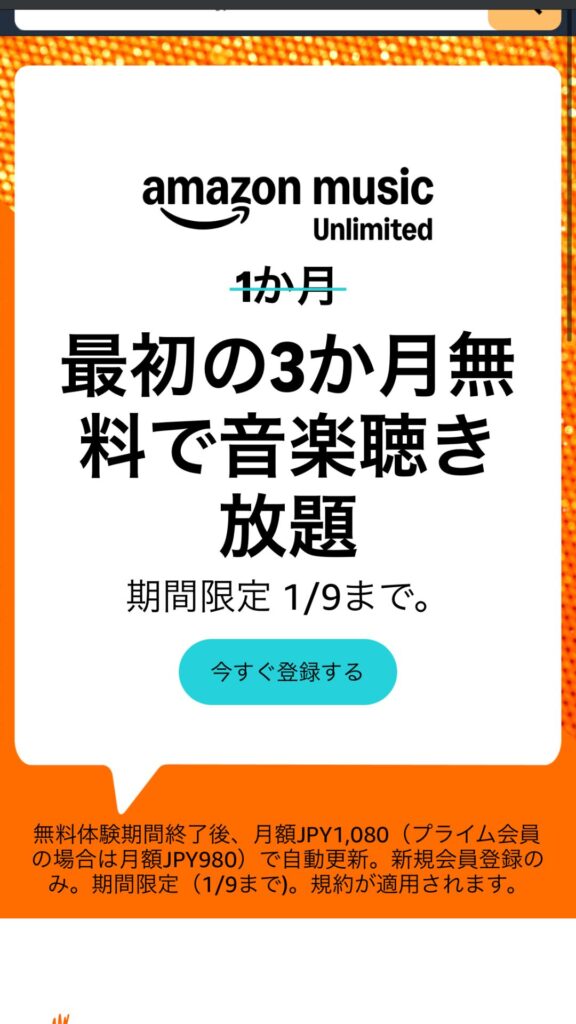 - 現在Amazon music unlimitedは特別なキャンペーンを開催していない。